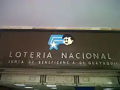 ![]() Logo de Lotería Nacional a la entrada del edificio de la Junta de Beneficencia de Guayaquil. | ||