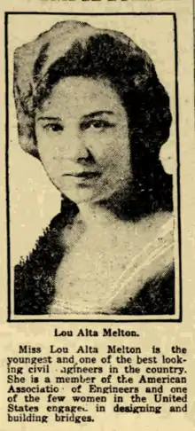 Lou Alta Melton (febrero de 1895-julio de 1974) fue una ingeniera civil e ingeniera de puentes estadounidense.