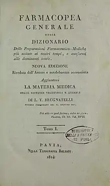 - U. Baldini, "Brugnatelli, Luigi Valentino", in Dizionario biografico degli italiani, v. 14, Roma, 1972, pp. 494-496.