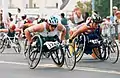 - La atleta australiana en silla de ruedas T53 Louise Sauvage compite en la maratón en los Juegos Paralímpicos de Atlanta de 1996.