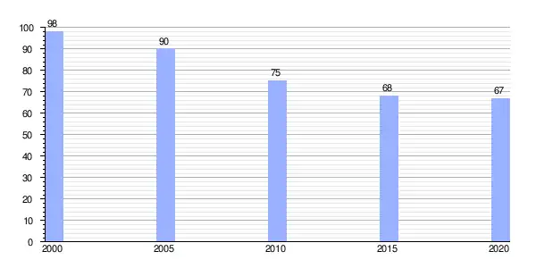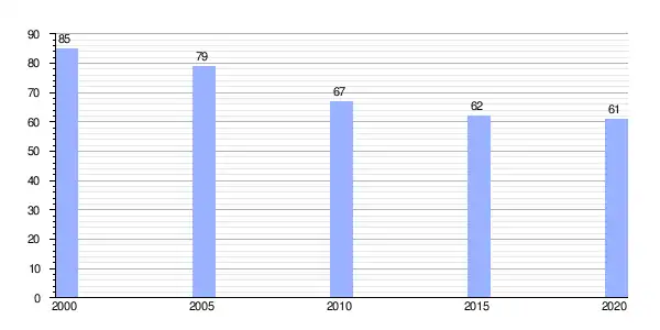 Gráfica de evolución demográfica de Louzarela (parroquia) entre 2000 y 2020 |