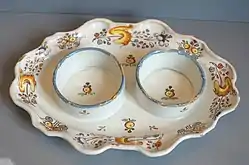 De entre el conjunto de formas tradicionales, algunos recipientes de loza o porcelana continúan teniendo una relativa presencia en las mesas españolas, como alternativa distintiva a la producción industrial, o como simple elemento decorativo.[lower-alpha 1][8] Así pueden encontrarse, además de la vajilla básica, ejemplares del tipo: