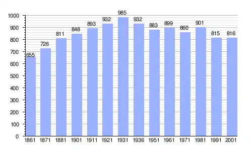 Gráfica de evolución demográfica de Lozzolo entre 1861 y 2001 |