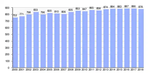 Gráfica de evolución demográfica de Lubre entre 2000 y 2018 |