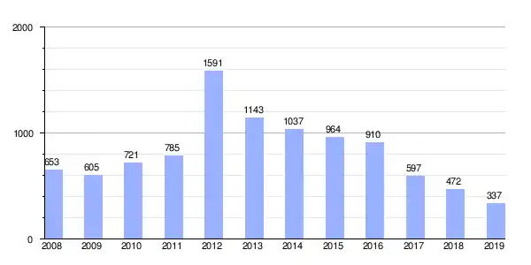 Gráfica de evolución de Deuda viva del Ayuntamiento de Lucena del Puerto entre 2008 y 2019 |