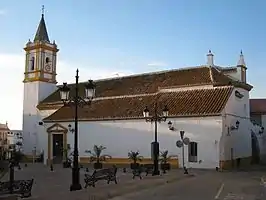 - Capilla de la Santa Cruz de Arriba.Es de estilo regionalista, con fachada de ladrillos vistos y cal. Su construcción ha sido faseada, comenzando con la compra del solar en los años 80, pasando a levantarse primero la estructura y cerramientos en bruto, se termina la fachada en primera instancia, y en el año 2001 se comienza a trabajar en la última fase, consistente en la terminación del interior. Destaca de su exterior, la decoración con imágenes de La Pasión bordeando la puerta de entrada con El Cordero de Cristo en la Cruz sostenido por ángeles en la parte central, las imágenes están pintadas en azulejos sevillanos. El exterior de la capilla, termina con un campanario en forma de cúpula, coronado por una cruz de hierro forjado. Si nos sumergimos en el interior podemos ver una verdadera obra de arte, relativamente nueva, ya que ha sido inaugurada en el año 2013. Tanto los techos como la cúpula resaltan por el colorido que proporcionan los frescos con los que están decorados, obra del pintor sevillano Antonio Rodríguez Ledesma. En dichos frescos podemos encontrar pasajes importantes en la historia del cristianismo, además del patrón del pueblo, San Vicente Mártir y la patrona, la Virgen de la Luz, en dos lugares destacados de la capilla, junto al altar. El suelo es de mármol, con un diseño dividido en tres dibujos diferentes correspondiendo a las tres crujías que posee la capilla. Al fondo, podemos encontrar la Santa Cruz de Arriba en un precioso retablo dorado, en el que destacan diversas pinturas, entre ellas un dibujo de la fachada de dicha capilla y el exterior de la iglesia del pueblo, de donde sale en procesión el día grande de la festividad de las cruces de Mayo.