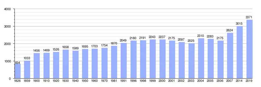 Gráfica de evolución demográfica de Lucena del Puerto entre 1826 y 2019 |