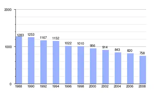 Gráfica de evolución demográfica de Luena entre 1988 y 2008 |