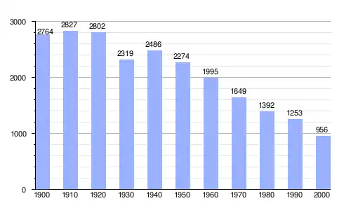 Gráfica de evolución demográfica de Luena entre 1900 y 2000 |