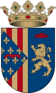 En la primera partición, se representan las armas de Alfonso de Aragón el Viejo, primer duque de Gandía y fundador del Monasterio de San Jerónimo de Cotalba. Este monasterio, como se ha indicado, es el fundador de Lugar Nuevo de San Jerónimo el 8 de diciembre de 1609, y del cual ostenta su nombre. En la segunda partición, aparece el emblema heráldico de la orden de los Jerónimos. Tanto las armas ducales, como las de la orden de San Jerónimo, combinadas en este escudo, hacen referencia conjuntamente al Monasterio de San Jerónimo de Cotalba como fundador de Lugar Nuevo de San Jerónimo. El escudo municipal está basado, pues, en una heráldica usada, por separado, por el monasterio (escudo del duque / escudo de la orden.