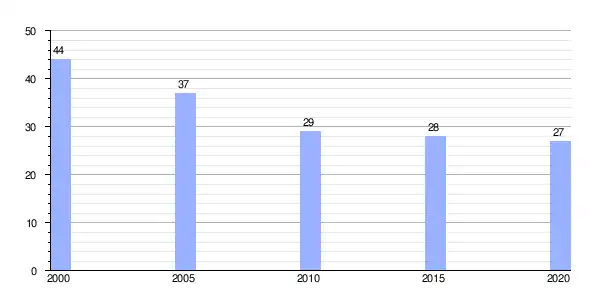 Gráfica de evolución demográfica de Lugar de Arriba entre 2000 y 2020 |
