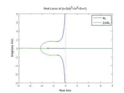 - Lugar de raíces sobre el eje real. Si la función de transferencia a lazo abierto tiene más de un polo o cero reales, entonces el segmento del eje real que tiene un número impar de polos y ceros reales a su derecha forma parte del lugar de raíces.