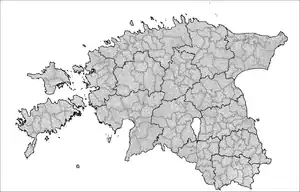 A 1 de noviembre de 2002, había en Estonia 47 ciudades, 9 bouroughs, 173 bouroughs pequeños y 4.430 aldeas.[2]