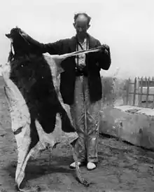 ![]() Lozano sujeta una piel de antílope Mohor. | ||