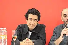 ![]() Luis Vicente de Aguinaga en la Feria del Libro de Guadalajara, en 2013. | ||