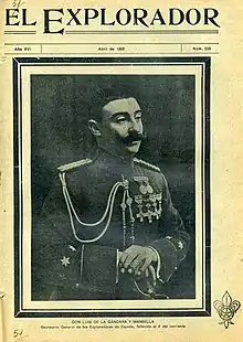 En el campo social, sucedió a Antonio Trucharte Samper como secretario general de la asociación escultista los Exploradores de España («boy scouts españoles») desde el 14 de febrero de 1927 por Real Orden de la Presidencia del Consejo de ministros hasta su repentina muerte.[5][6] Luis de la Gándara ingresó en los Exploradores de España en 1920 como vocal de la institución a propuesta de Trucharte.[7]
