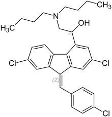 Lumefantrina, también llamado benflumetol, es un medicamento que se emplea en el tratamiento del paludismo. No se utiliza de forma aislada, sino asociado con artemeter formando una asociación de fármacos con dosis fijas, cada comprimido contiene por lo general 20 mg de artemeter y 120 mg de lumefantrina. Es uno de los medicamentos incluidos en la lista de Medicamentos esenciales de la Organización Mundial de la Salud.[1] La asociación de artemeter con lumefantrina se emplea por vía oral en el tratamiento del paludismo causado por Plasmodium falciparum resistente a la cloroquina, no se utiliza como tratamiento preventivo.[2] [3] [4]