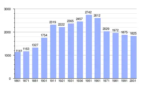Gráfica de evolución demográfica de Luogosanto entre 1861 y 2001 |