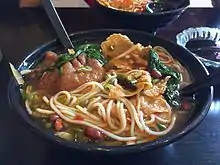 Ingredientes | Vermicelli de arroz, Caracol de agua dulce, Brotes de bambú, yuba, maní y ají | |