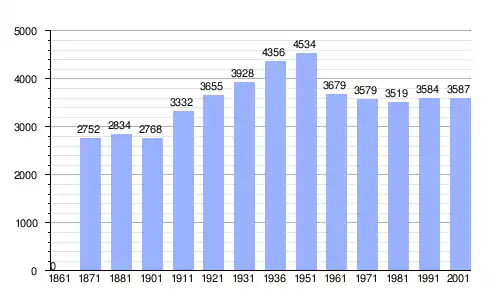 Gráfica de evolución demográfica de Lusia entre 1861 y 2001 |