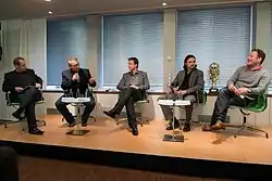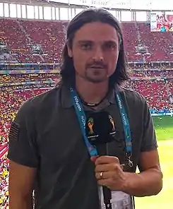 ![]() Lutz Pfannenstiel como reportero durante la Copa del Mundo de 2014 | ||