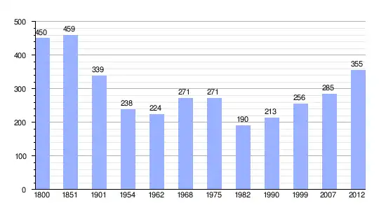 Gráfica de evolución demográfica de Luxe-Sumberraute entre 1800 y 2012 |