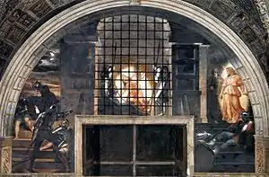 El arte helenístico gustaba de los efectos de luz, especialmente en la pintura de paisaje, como se denota en los estucos de La Farnesina. El claroscuro fue muy utilizado en la pintura romana, como se denota en las arquitecturas ilusorias de los frescos de Pompeya, aunque desapareció durante la Edad Media.[90] Vitruvio recomendaba como más idónea para la pintura la luz del norte, al ser más constante debido a su poca mutabilidad en el tono.[99] Posteriormente, en el arte paleocristiano se evidenció el gusto por los contrastes entre luz y sombra —como se vislumbra en las pinturas sepulcrales cristianas y en los mosaicos de Santa Pudenciana y Santa María la Mayor—, de tal forma que en ocasiones se ha denominado a este estilo como «impresionismo antiguo».[100]