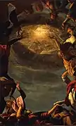 En el Renacimiento se generalizó el uso del lienzo como soporte y la técnica de la pintura al óleo, especialmente en Venecia desde 1460. El óleo aportaba una mayor riqueza cromática y facilitaba la representación de brillos y efectos lumínicos, que se podían representar en una mayor gama de matices.[131] En general, la luz renacentista solía ser intensa en los primeros planos, disminuyendo progresivamente hacia el fondo.[132] Era una iluminación fija, lo que suponía una abstracción respecto a la realidad, ya que creaba un espacio aséptico subordinado al carácter idealizante de la pintura renacentista; para reconvertir este espacio ideal en una atmósfera real se siguió un lento proceso basado en la subordinación de los valores volumétricos a los efectos lumínicos, a través de la disolución de la solidez de las formas en el espacio luminoso.[104]