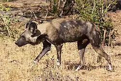 - Botsuana: Las perspectivas de la especie en Botsuana son esperanzadoras, ya que el norte del país probablemente alberga las mayores poblaciones de perros salvajes africanos en África. Sin embargo, recibe solo una protección parcial y los agricultores pueden dispararle en defensa del ganado. El bastión más importante de la especie en Botsuana es en el distrito Noroeste, que incluye el delta del Okavango, la Reserva de caza Moremi y el Parque nacional de Chobe. En 1997, se estimaron en la zona al menos cuarenta y dos manadas que contenían entre cuatrocientos cincuenta y quinientos individuos. L. pictus es escasa en otros lugares.[3]