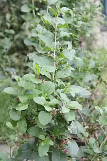 La betaína, un alcaloide, se encuentra en abundancia en la tasa de 1,50% en las hojas secas.