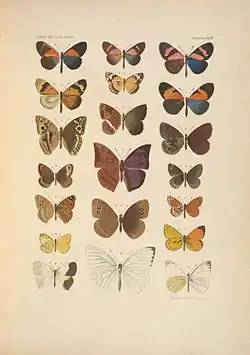 - John O. Westwood (1851) En: The genera of diurnal lepidoptera: comprising their generic characters, a notice of their habits and transformations, and a catalogue of the species of each genus por Edward Doubleday y John O. Westwood, Ilustrado por William C. Hewitson. Londres: Longman, Brown, Green, and Longmans,1846-1852. Libro disponible en The Biodiversity Heritage Library. Ver página 401 e ilustraciones.