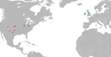 ![]() Verde (Carbonífero). Rojo (Pérmico). Amarillo (espécimen dudoso) | ||