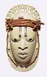 Existen dos máscaras casi idénticas: una en el Museo Británico de Londres y la otra en el Museo Metropolitano de Arte de Nueva York.[1][2] Ambos muestran el sereno rostro de la Reina madre con un tocado de cuentas, una gargantilla de cuentas en su cuello, escarificaciónes resaltadas por incrustaciones de hierro en la frente y todo enmarcado por la brida de una tiara calada y collar con imágenes de seres simbólicos, así como bucles dobles en cada lado para la fijación del colgante.