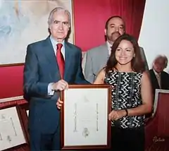 En el 2012 recibe la designación de Miembro de mérito por la Fundación Carlos III, Madrid, también recibe la Medalla de La Real y Distinguida Orden Española de Carlos III, Toledo, se le concede el nombramiento oficial de Representante del Ecuador como artista en el Bicentenario del Tribunal Supremo de España.