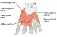 - Esta obra contiene una traducción derivada de «Opponens digiti minimi muscle of hand» de Wikipedia en inglés, concretamente de esta versión, publicada por sus editores bajo la Licencia de documentación libre de GNU y la Licencia Creative Commons Atribución-CompartirIgual 3.0 Unported.