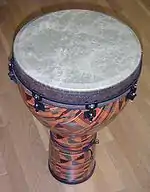 En general todo tipo de tambores y timbales son utilizados, sin embargo merecen especial mención los tambores de raja, los timbales, el dundun para la orquesta polirrítimica yembé, típica en toda África, y los shekere.