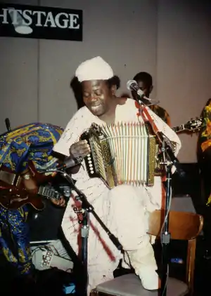 - Afropop: Fuji Alhaji Sikiru Ayinde Barrister comenzó en 1965 a cantar la música que solía despertar temprano por la mañana a los musulmanes durante la estación santa de Ramadán. Él continuó meclando los aspectos de la percusión apala y canciones gospel y de la música filosófica sakara, surgiendo un nuevo género musical llamado fuji.