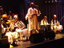 Al popular cantante Abu Araki al-Bakheit,[30] se le prohibió interpretar canciones políticas, pero finalmente logró continuar actuando desafiando a las autoridades. El famoso cantante del sur de Sudán, Yousif Fataki, hizo que Radio Omdurman borrara todas sus cintas. Otros artistas populares modernos de la época incluyen a Abdel Karim el Kabli, con una historia de actuaciones notablemente larga y diversa, Mohammed al Amin y Mohammed Wardi.[14] Hasta este momento, la gran mayoría de los cantantes sudaneses expresaron sus letras en árabe (sudanés), tocando así los sentimientos de su audiencia nacional, así como el creciente número de sudaneses que viven en el extranjero, especialmente en Egipto, Arabia Saudita y el Países del Golfo.