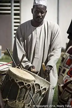 Las numerosas hermandades de derviches sufíes son grupos religiosos y místicos que utilizan las oraciones, la música y la danza ritual para lograr un estado alterado de conciencia en una tradición llamada Dhikr. Al igual que en otras comunidades islámicas, las prominentes órdenes sufíes de Sudán participan en ceremonias rituales de Dhikr que no son consideradas por los fieles como actuaciones musicales, sino como una forma de oración. Cada orden o linaje tiene una o más formas de Dhikr, cuya liturgia puede incluir la recitación, el acompañamiento instrumental de tambores, la danza, los trajes, el incienso y, a veces, conducir al éxtasis y al trance.[11] Los rituales de Dhikr se celebran con mayor frecuencia los viernes por la tarde, como el que está ante la tumba de Sheikh Hamed el-Nil en Omdurman.[12][13] Una forma tradicional de exorcizar espíritus malignos de individuos poseídos son las actuaciones musicales de las reuniones de mujeres llamadas zār.[14]