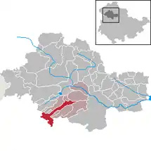 Se encuentra ubicado al norte de la ciudad de Eisenach, al noroeste de Erfurt, la capital del estado.
