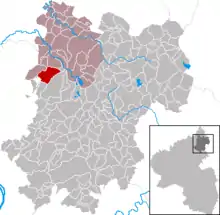 Se encuentra ubicado al noreste del estado, cerca de la orilla derecha del río Rin, de la orilla norte del río Lahn, y de la frontera con el estado de Hesse.