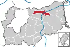 Se encuentra ubicado al sur del estado, a poca distancia al oeste de la frontera con el estado de Baviera.