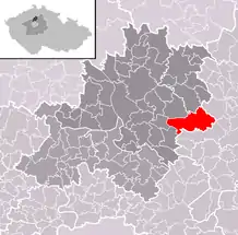Se encuentra ubicada al norte de la región y de Praga, cerca de la confluencia de los ríos Elba y Moldava, y de la frontera con la región de Ústí nad Labem.[1]
