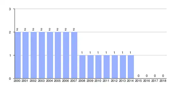 Gráfica de evolución demográfica de Mañas entre 2000 y 2018 |