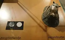 ![]() Diente y reconstrucción de Maastrichtidelphys en el Museo de Historia Natural de Maastricht. | ||