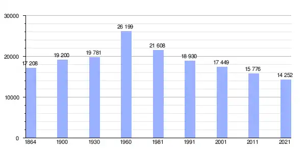 Gráfica de evolución demográfica de Macedo de Cavaleiros entre 1864 y 2021 |