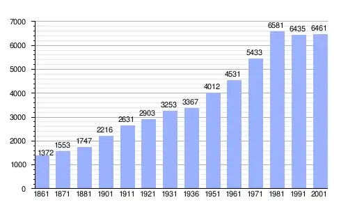 Gráfica de evolución demográfica de Macherio entre 1861 y 2001 |