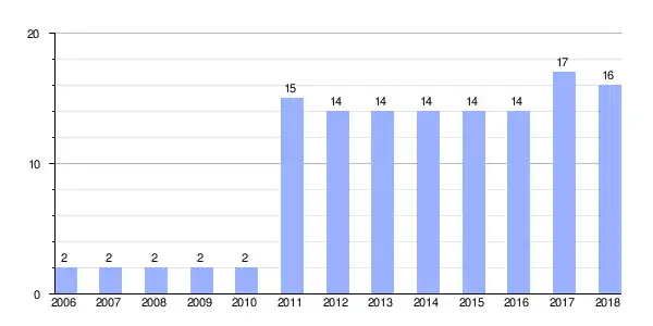 Gráfica de evolución demográfica de Maciñeiras[1] entre 2006 y 2018 |