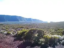 Otra caldera más antigua puede adivinarse en torno a la primera: está delimitada por los barrancos formadas por el río de los Remparts que fluye hacia el sur y el río del Este que fluye hacia el noreste. Entre las fuentes de estos dos cursos de agua se encuentra la Llanura de las Arenas, vasto escenario cubierto de escorias de apariencia lunar.