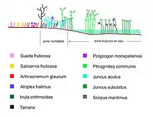 La llanura de Macta parece una vasta pradera salada casi absolutamente plana. Esta región tiene la particularidad de presentar rodales puros de Salsolaceae, Juncaceae y gramineas. Entre ellos: